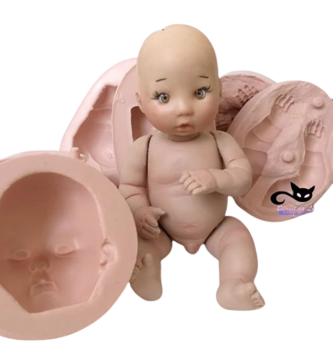 Molde de Silicone - Kit Bebê Reborn 02 Bipartido 20cm + 20 pares de Olhos Resinados 380A-P