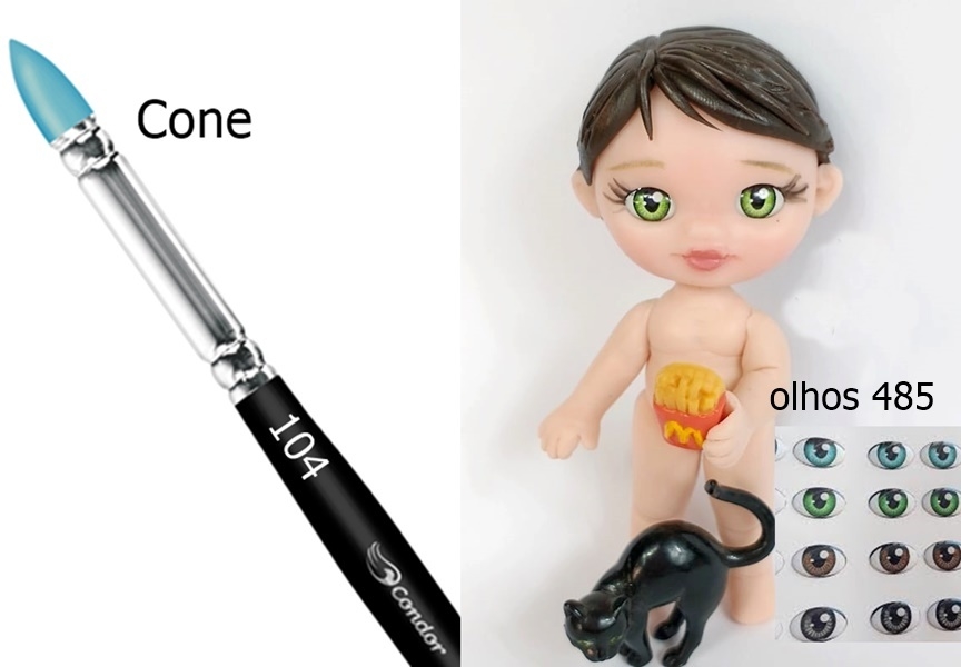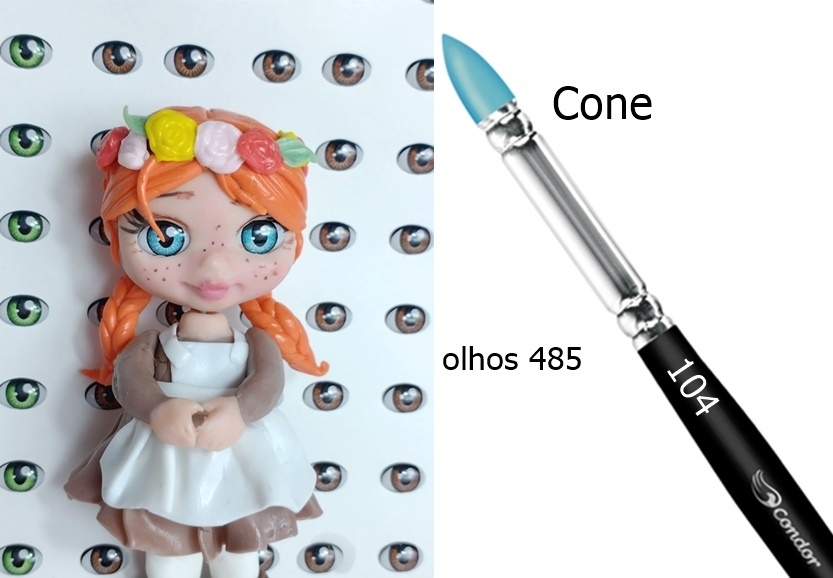 Olhos Resinados/Ferramentas - Kit Pincel Cone + 01 Cartela com 40 pares de olhos resinados cores variadas 485P
